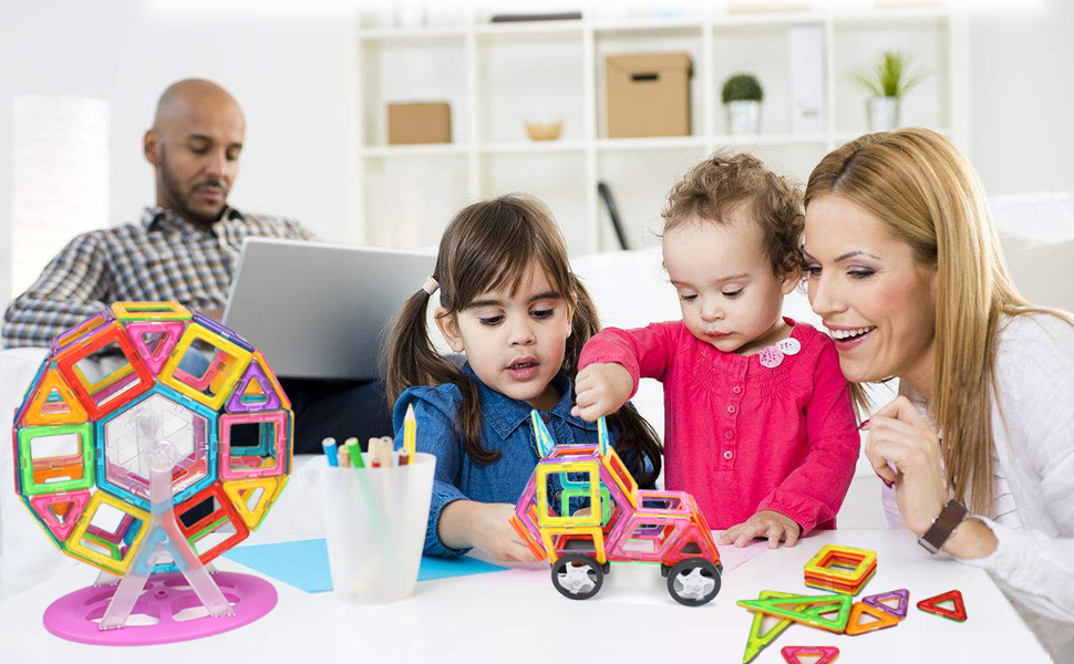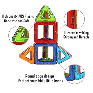 Magnetic Blocks for Kids, Educational Building Toys Magnetic Tiles review. These magnetic tiles are awesome. You can make a lot of things out of them. My son loves them. It comes with a small book of things to build and you can make your own creations. There are 100 pieces in this set. Check it out on amazon.